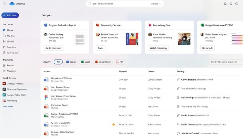 微软在公告文章中写道:“针对工作和学习的新 OneDrive 体验从 OneDrive 主页开始,涵盖了跨 Microsoft 365 的文件体验。这是一项视觉和功能上的升级,旨在帮助您快速访问文件,并以多种方式保持内容的有序,而无需您做任何整理。新的功能和升级的设计使您能够更快地访问 OneDrive 中的所有个人、共享和团队文件,从而提高生产力。”
